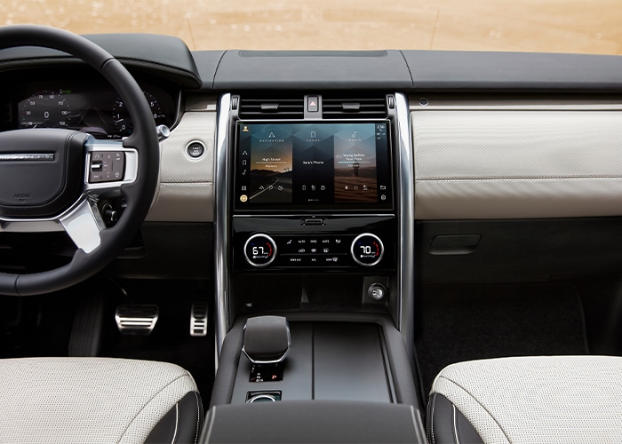 The Discovery provides roomy seating for up to seven, with power-adjustable front seats, heated first- and second-row seating, and an available power third row. Additional cabin comforts include: