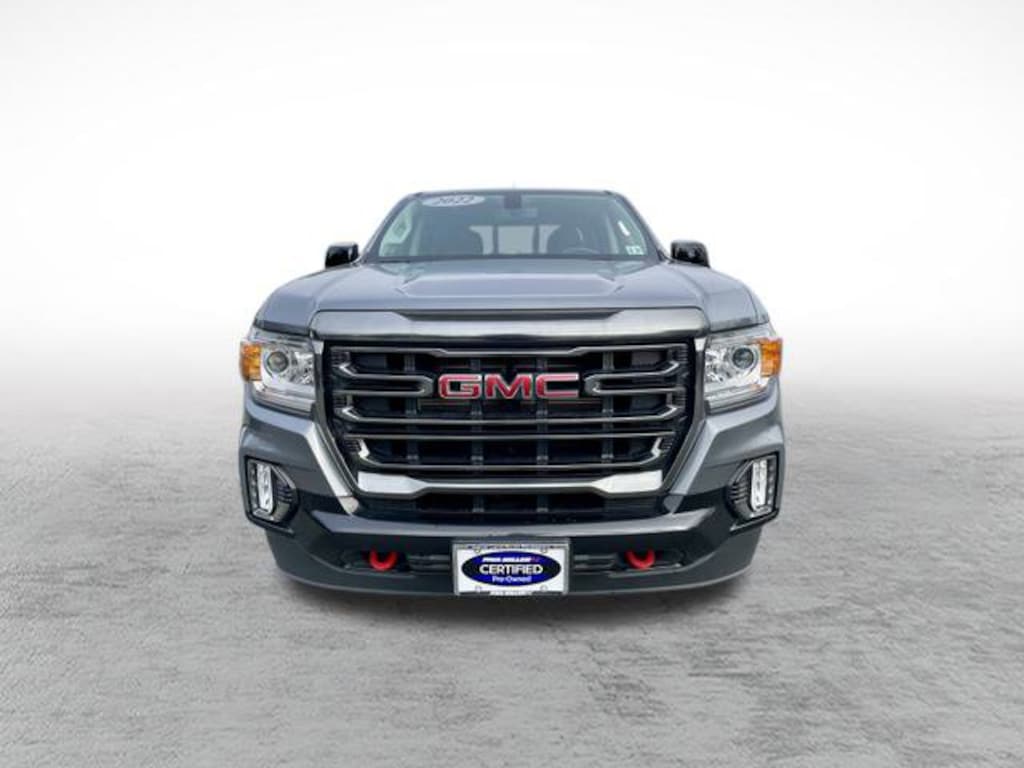 Certified. Satin Steel Metallic 2022 GMC Canyon AT4 w/Cloth V6 8-Speed Automatic 4WD