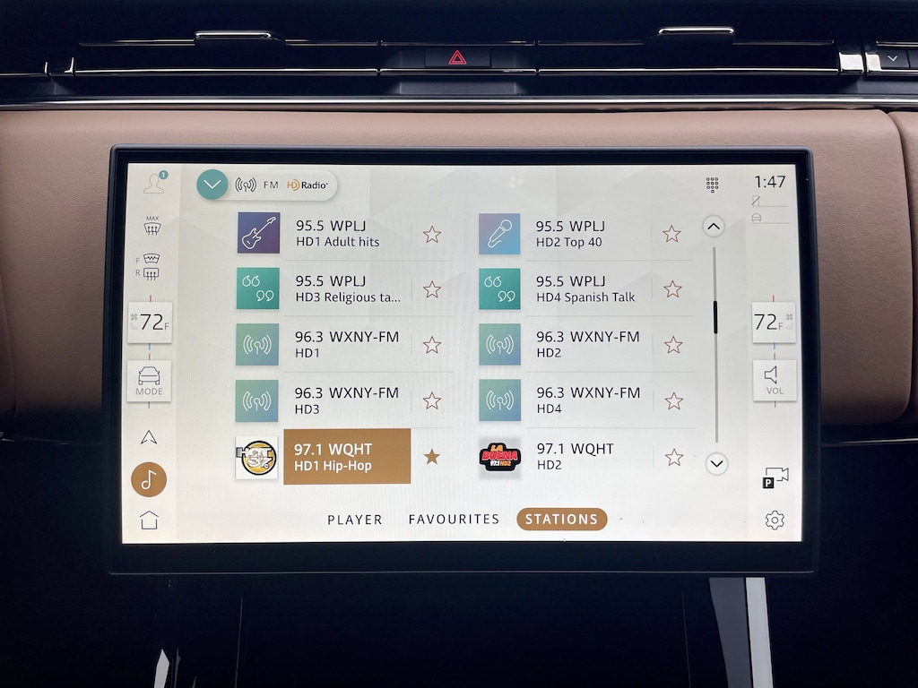 Land Rover Approved Certified, 20-Way Elec Heated & Ventilated Fr Seats w/Memory, A/V remote, Adaptive suspension, AM/FM radio: SiriusXM, Apple CarPlay & Android Auto, Auto High-beam Headlights, Auto-leveling suspension, Automatic temperature control, Block heater, Brake assist, Electronic Stability Control, Exterior Parking Camera Rear, Heated door mirrors, Heated Front Seats, Heated rear seats, Heated steering wheel, Illuminated entry, Memory seat, Navigation system: InControl Navigation Pro, Panic alarm, Power Liftgate, Power moonroof, Radio: Meridian Sound System, Rain sensing wipers, Security system, Speed control, Speed-sensing steering, Turn signal indicator mirrors, Variably intermittent wipers, Wheels: 21" (Style 5126).