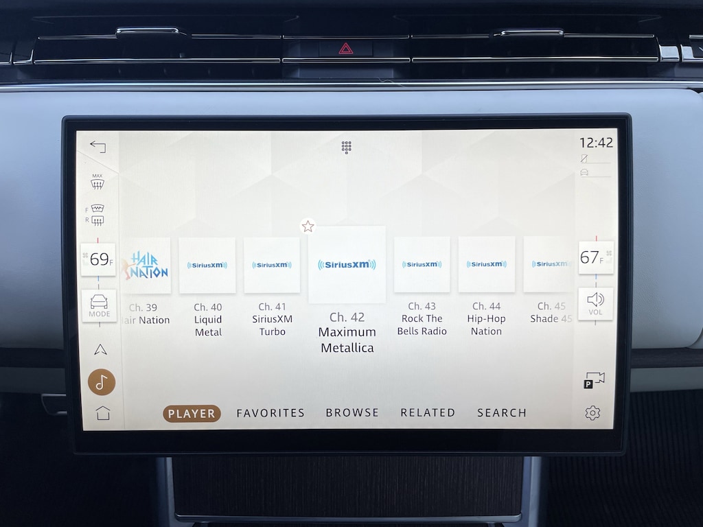 Land Rover Approved Certified, Ebony/Perlino Leather, 15 Speakers, 20-Way Heated/Ventilated Electric Fr Bucket Seats, Adaptive suspension, Air Conditioning, AM/FM radio: SiriusXM w/360L, Apple CarPlay & Android Auto, Auto-dimming door mirrors, Auto-leveling suspension, Automatic temperature control, Brake assist, Bumpers: body-color, Electronic Stability Control, Exterior Parking Camera Rear, Four wheel independent suspension, Front dual zone A/C, Front reading lights, Head restraints memory, Heated door mirrors, Heated rear seats, Illuminated entry, Leather Shift Knob, Leather steering wheel, Memory seat, Navigation system: Pivi Pro Connected Navigation, Panic alarm, Power door mirrors, Power moonroof, Radio: Meridian Sound System, Rear air conditioning, Rear window defroster, Security system, Speed control, Wheels: 21".